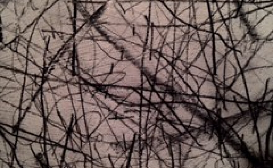 I mark over the raw canvas with soft graphite and then paint over that with a gesso which is made of rabbit skin glue and titanium white.