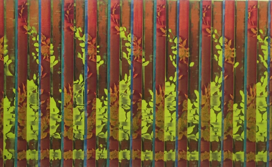 A burning star in the show was Wichita Artist Kevin Mullins’ screen print on fabric titled: “Sari Zoetrope”. Mullins had a severely debilitating stroke last week and lies in a hospital bed as I speak. Regional art isn’t thought of without Kevin Mullins in its mix. Notably, his work in this show won a prestigious award. Our hearts are with him and his wife, Ann.