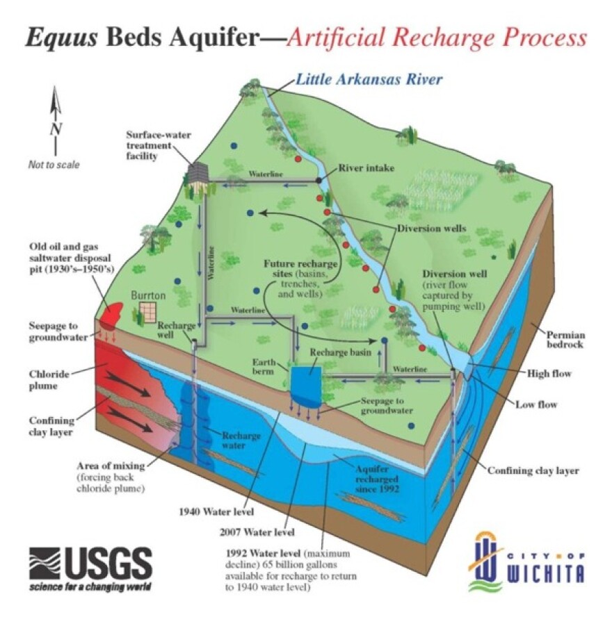 One aspect of the solution to is recharge the groundwater, increasing the level by pulling, treating and then injecting water into the aquifer from the Little Arkansas River.