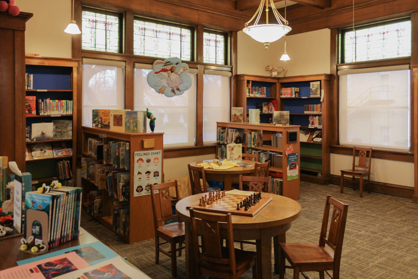 Much of the Peabody library is unchanged since its opening in 1914. The wooden table and chairs in the children's section are original to the building. (Meg Britton-Mehlisch / KMUW)