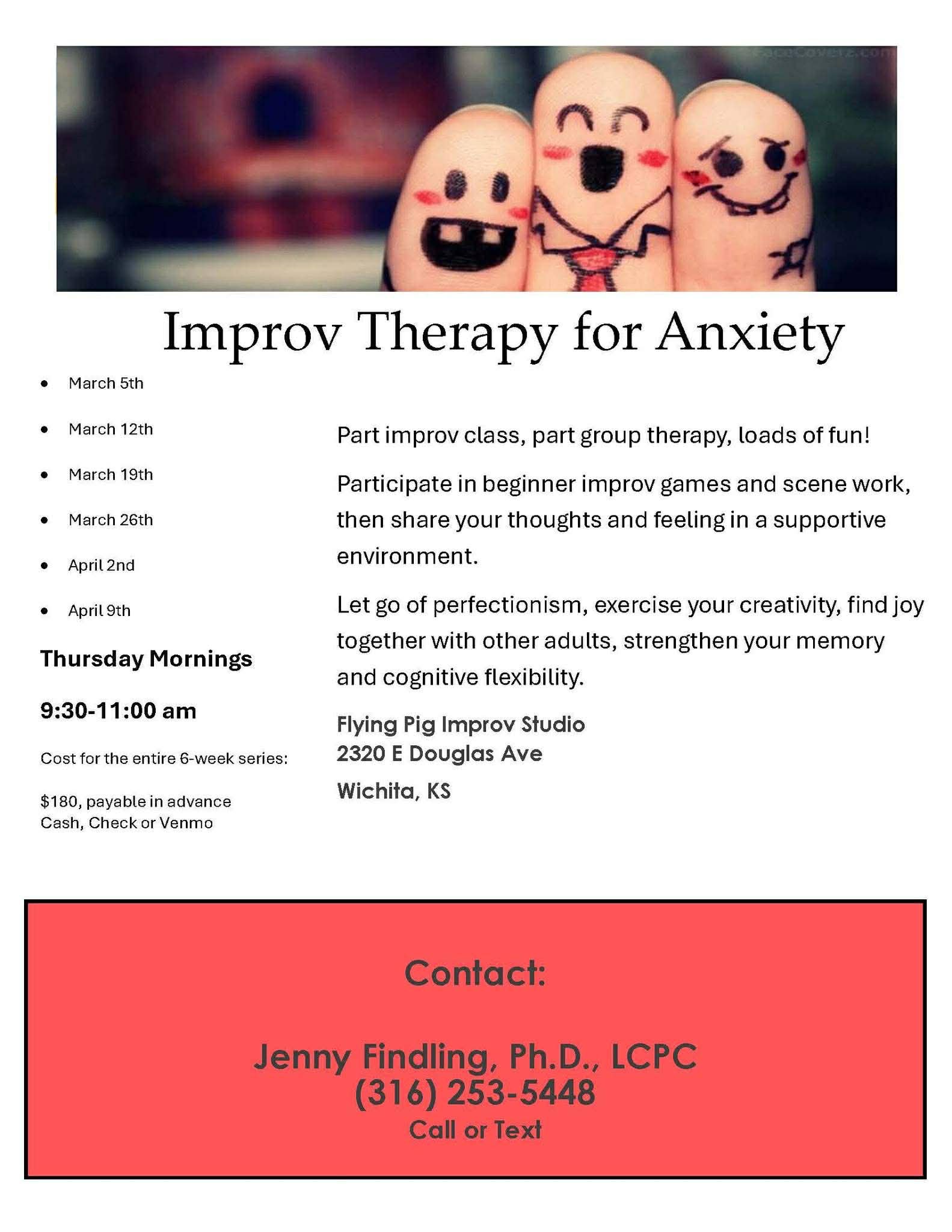 Improv Therapy for Anxiety is a six-week seminar that begins on March 5th. Visit flyingpigimprov.com for details.