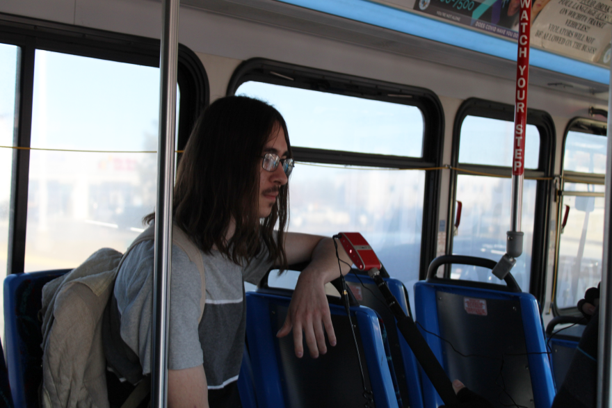 For this month's En Route, Hugo Phan sat with Castillo as he rode on a bumpy bus ride to a crafts store to pick up some crochet supplies.